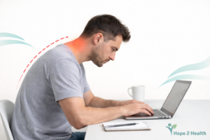 Forward head posture from phones, laptops, and desk work places excessive strain on neck muscles and joints.